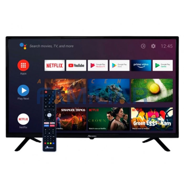 • Sistema operativo Android TV (Android 9.0) con procesador quad core, Control remoto controlado por voz y bluetooth.